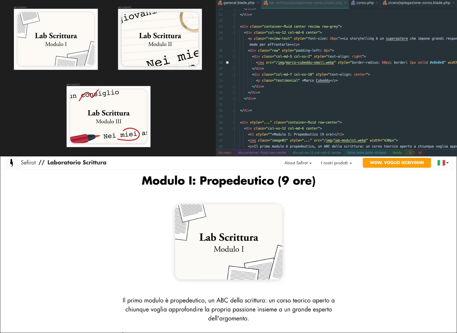 Invece oggi mi sono reso conto che è un grande allenamento: dovevo trovare le parole giuste per i titoli mentre costruivo immagini ad hoc e studiavo la strategia della pagina, e intanto scrivevo il codice per metterla online. Non è facile, e a furia di farlo si diventa più bravi e più veloci, ci si prepara per reggere qualcosa di più importante.