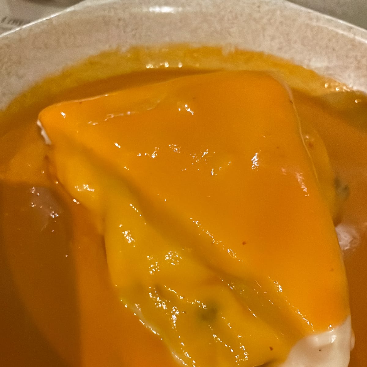 Sì, l’ho fatto: ho ordinato una francesinha, il famoso piatto di Porto 😂 è un sandwich ripieno di vari tipi di carne, prosciutto, ricoperto di formaggio, uovo e una salsa a base di pomodoro e birra.