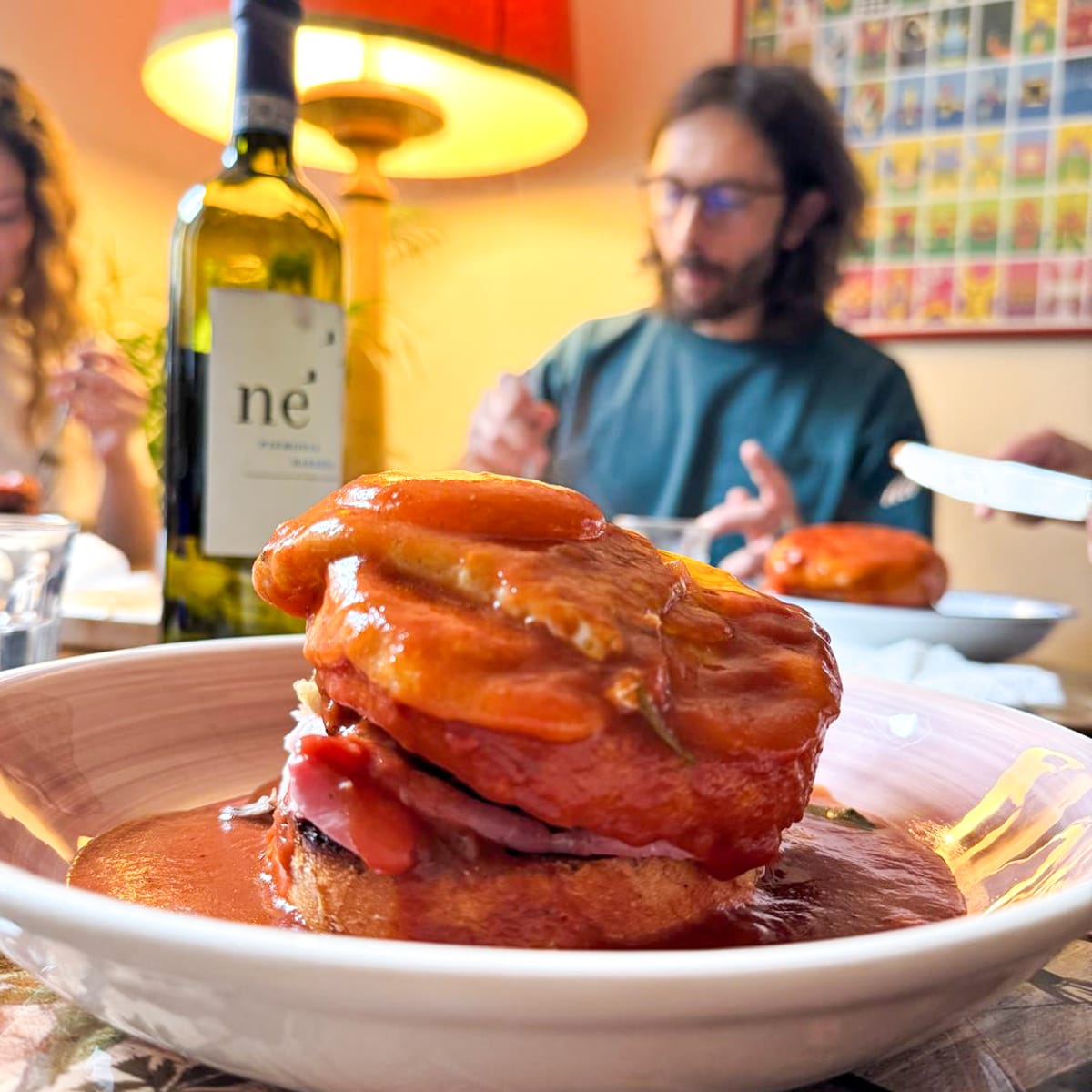 Non avendo portato regali da Porto ai miei amici, ho deciso di cucinare per loro. Quella nella foto è la mia francesinha alla piemontese (con bollito, prosciutto e salsiccia 😅): bellissima da vedere e letale in fase di digestione.